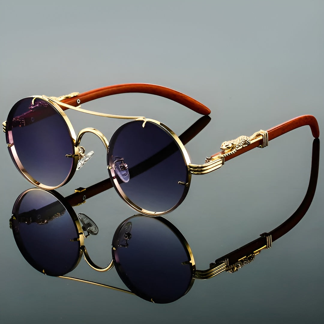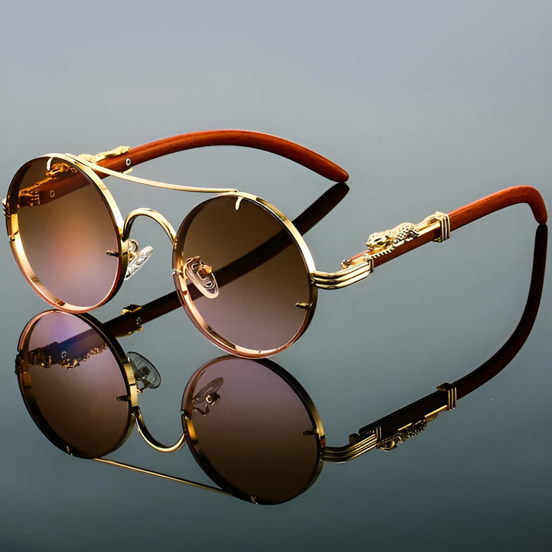 William solbriller kombinerer gammel skole stil med komfort. De har runde, retro stel med et strejf af leopard, gyldne kanter og bløde linser. De er lette og behagelige at have på—perfekte til solrige dage eller bare at se cool ud.