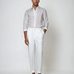 Opdag den raffinerede stil af de Hvide Linned Bukser med Snor fra Grand Arbre. Disse åndbare, lette bukser kombinerer komfort, stil og alsidighed, ideel til mænd, der søger et afslappet, men raffineret look, der er perfekt til både varmere dage og uformelle anledninger.