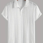 Oplev den elegante Patrick™ | finstrikket polo, der forener diskret raffinement med et moderne, afslappet udtryk. Den klassiske polo-krave og det markante struktur med diamant- og linjemønster tilføjer karakter, mens den løse pasform og de let rullede ærmer skaber en behagelig bæreoplevelse. Denne skjorte er alsidigt kombinerbar og ideel til både solrige dage, stilfulde møder eller afslappede aftener.