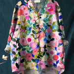 Denne bluse med flæser sprøjtede maleriske blomster og har en luftig, afslappet pasform, der holder tingene friske, lette og helt glædelige. Lavet af en blød blanding af linned og bomuld, er det statement-plagget, din garderobe har ventet på.
