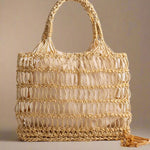 Solstråle Taske forener naturlig charme med et tidløst, håndlavet udtryk. De åbne fletmønstre giver et luftigt og sommerligt look, mens den medfølgende inderpose sørger for, at dine ting er sikkert opbevaret.