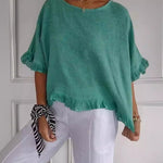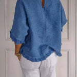Træd ind i et look, der føles lige så godt, som det ser ud. Amanda toppen med flæsekant kombinerer blødhed, bevægelse og fine detaljer i et enkelt og smukt design. Uanset om du er på vej til brunch, går en tur i byen eller slapper af med venner, tilføjer denne top en følelse af lethed og ro til din garderobe – og hjælper dig med at føle dig selvsikker, afslappet og smuk.