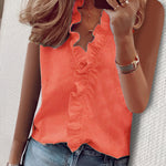 Romina™-blusen er designet til kvinder, der ønsker et elegant look uden at gå på kompromis med komfort. Det lette stof falder flot om kroppen, og de fine flæsedetaljer ved V-halsen giver et feminint touch. Perfekt til både kontoret og en hyggelig aften ude.