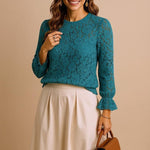 Astrid-blusen er en smuk, let og feminin bluse i fin blonder. Det gennemarbejdede mønster giver et romantisk og tidløst udtryk. Perfekt til både hverdagsbrug og særlige anledninger – style den med jeans for et afslappet look, eller med en nederdel for et mere sofistikeret outfit.