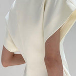Arkitektonisk i snit – denne skulpturelle wrap-top kombinerer markante strukturer med en flydende elegance. Midtpunktet er et enkelt metal-spænde, som smukt fremhæver taljen med et bevidst fokus.