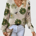 Alma-trøjen bryder den følelse. Let strikket, dejlig blød og med subtile blomster, der giver et elegant udtryk. Perfekt til at holde dig varm under en frisk efterårspromenade eller hyggeligt med en kop te på sofaen.