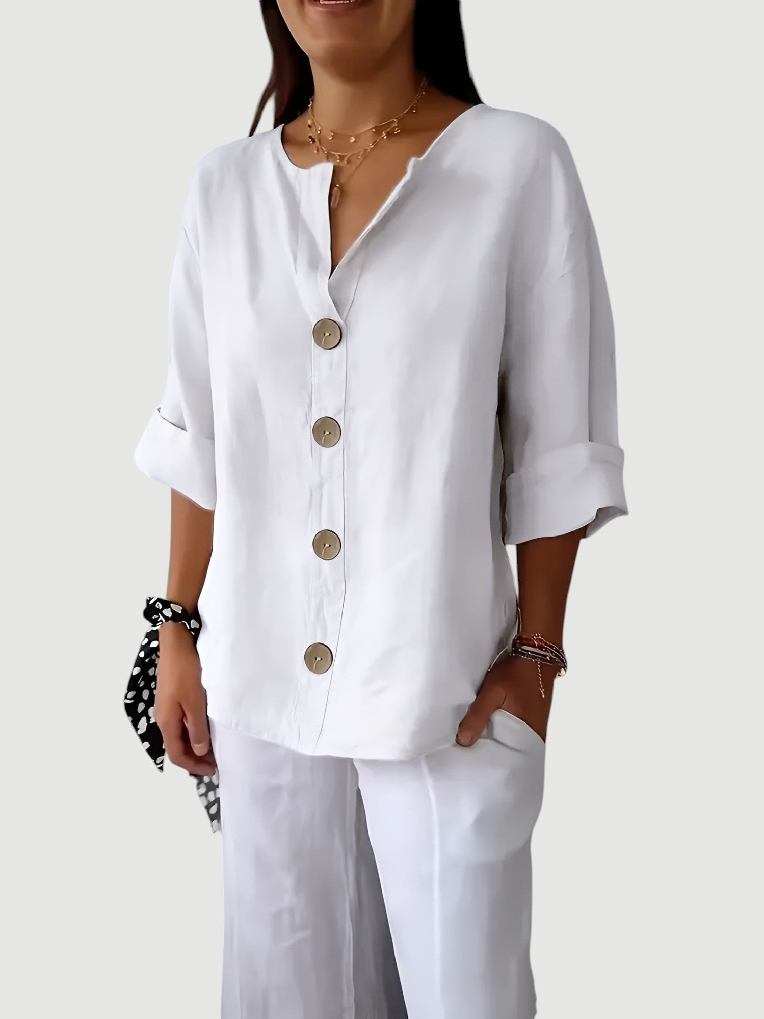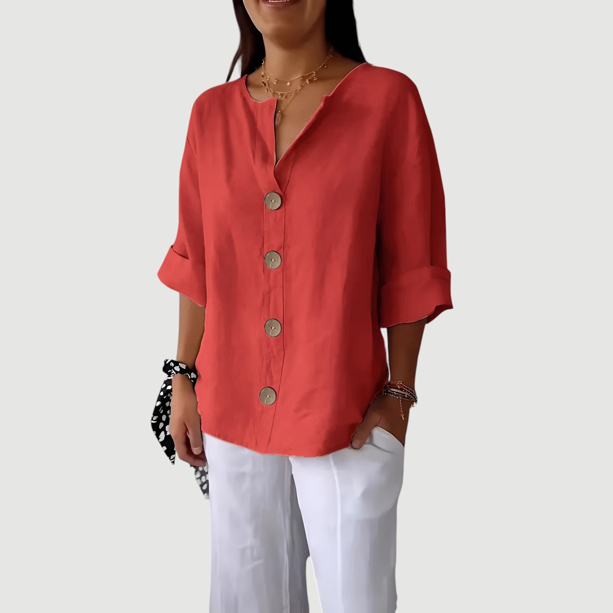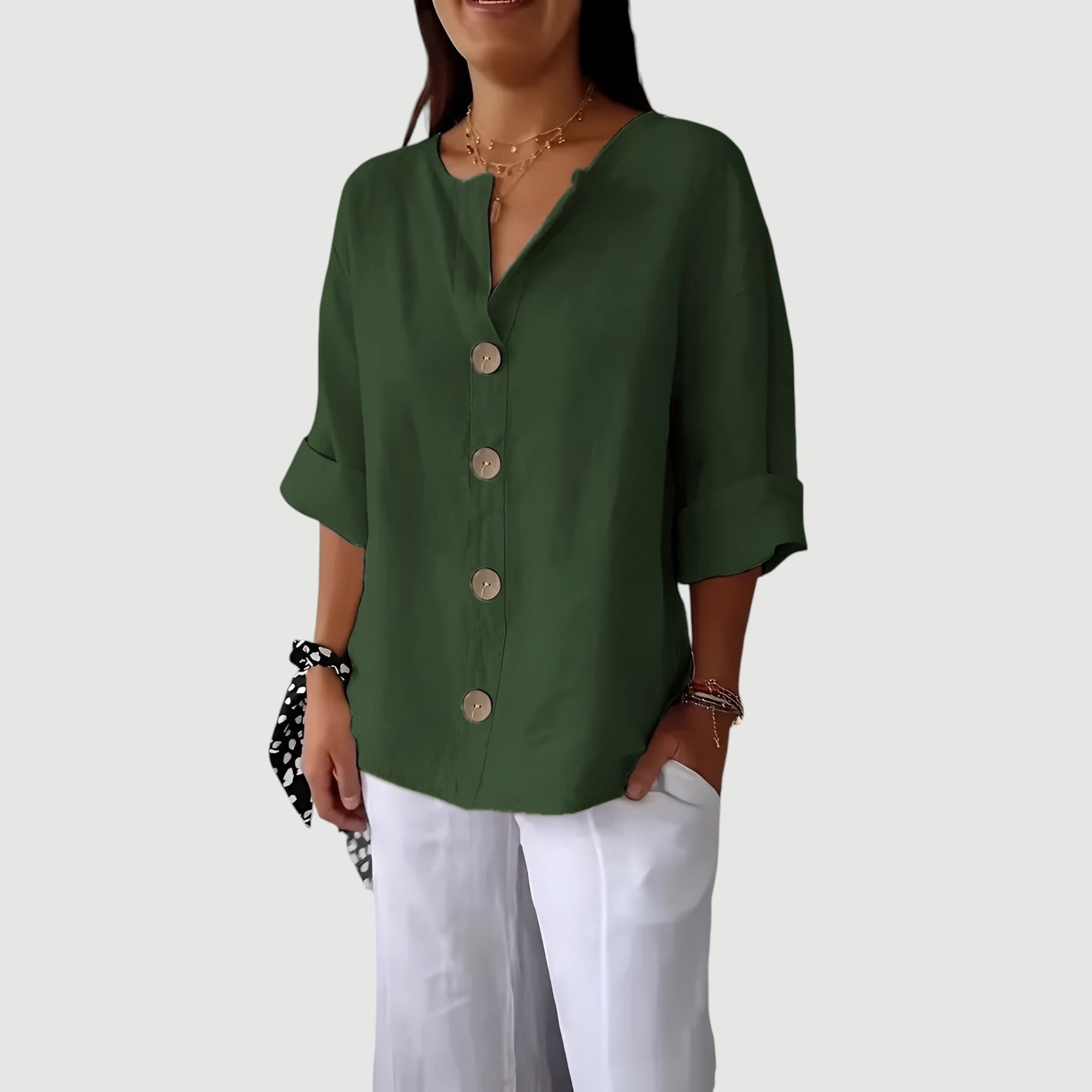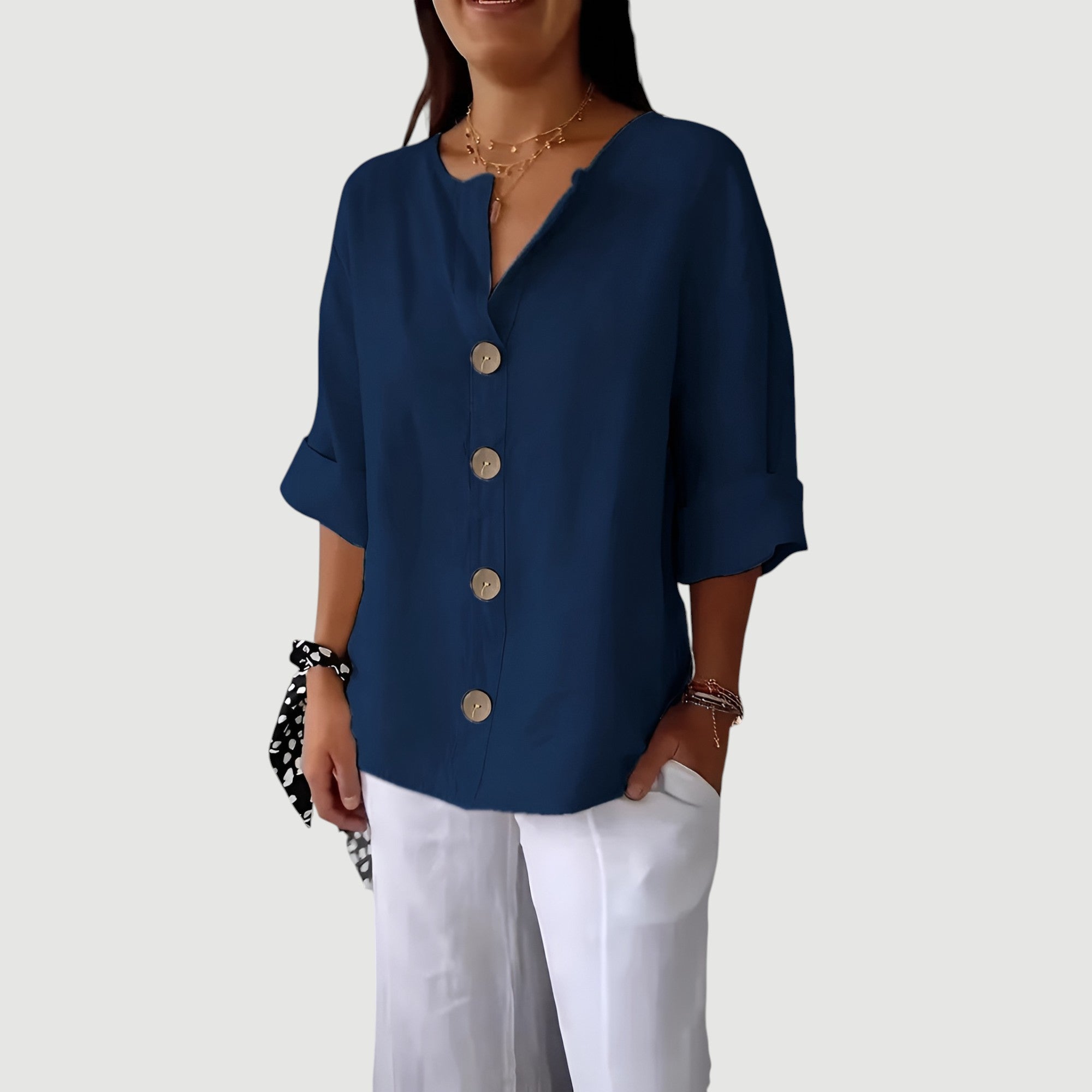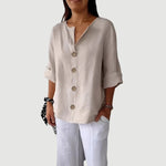 Luna-toppen er lavet af åndbart hør, som føles blødt og holder dig kølig på varme dage. Den løstsiddende pasform gør den nem at bevæge sig i, uden at den strammer. Uanset om du skal på stranden, gå en tur eller nyde en middag, passer denne top til både krop og anledning.