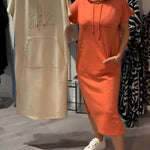 Ebba™ er kjolen til dig, der vil føle dig fri, komfortabel og stadig stilfuld. Med en blød og fleksibel pasform, flagermusærmer og en praktisk hætte med snøre er den perfekt til varme dage, hverdagsoplevelser – eller når du bare vil være dig selv, på den bedste måde.