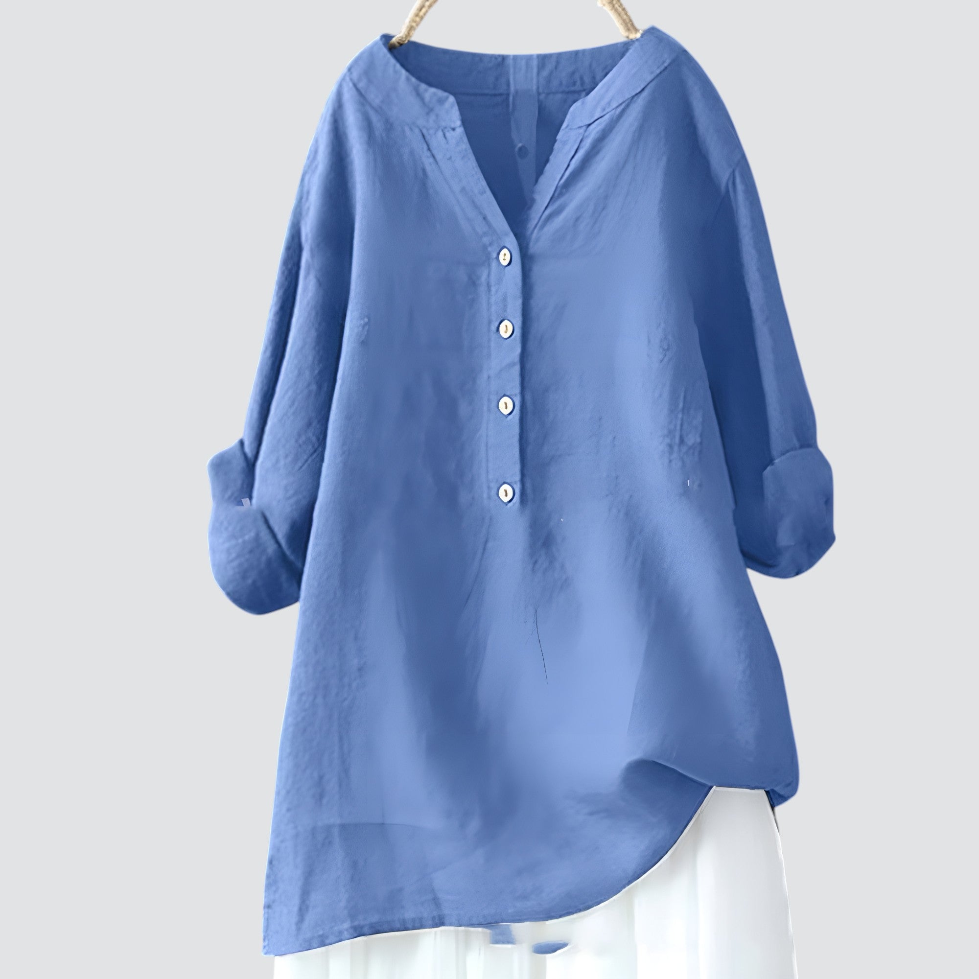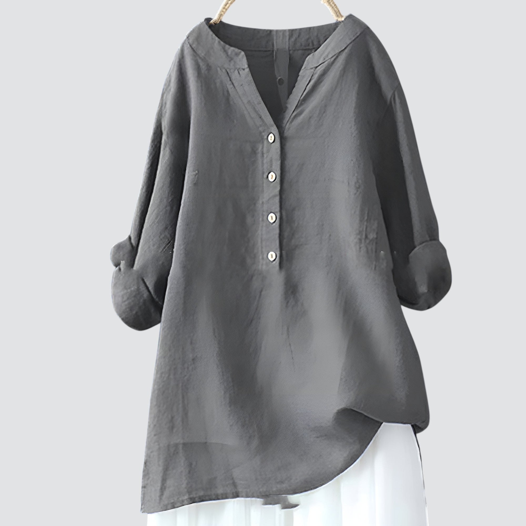 Emma™-toppen er lavet af åndbart hør, som føles blødt og holder dig kølig på varme dage. Den løstsiddende pasform gør den nem at bevæge sig i, uden at den strammer. Uanset om du skal på stranden, gå en tur eller nyde en middag, passer denne top til både krop og anledning.