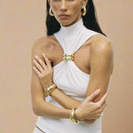 Fremhævet af en elegant guldring, der tiltrækker blikket og skaber et sofistikeret fokuspunkt. Et statement-piece designet til at vække opmærksomhed – uden at gå på kompromis med komforten.