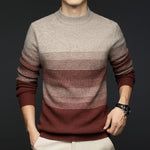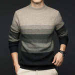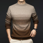 Forankret i den lange arv af ren uld, bærer denne sweater en raffineret blødhed med varig varme. Den gradvise falmning af dens striber låner dybden fra de tågede bakker i et design, der giver komfort og finhed til nutidens mænd.