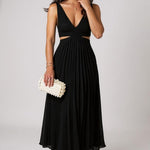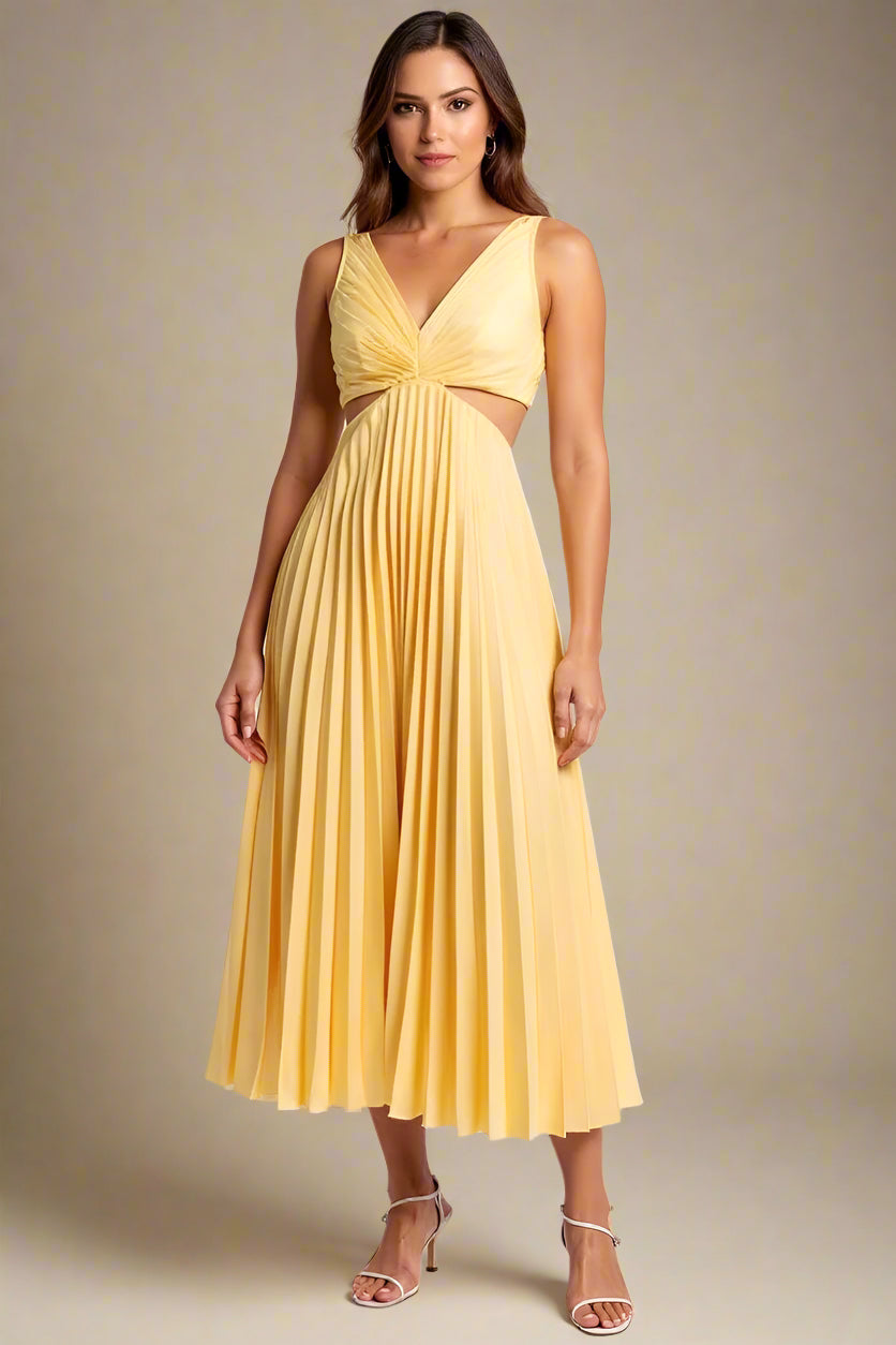 Gilda Kjole | Plisseret midi-kjole med sidesnit og krydset udskæring