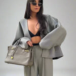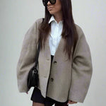 Løft dit look med Lena V-Hals Casual Jakke! Denne jakke tilbyder den perfekte kombination af stil og komfort. Det elegante V-hals design og den løse pasform giver et sofistikeret udseende, samtidig med at det tilbyder høj komfort. De retro knapdetaljer og de lange ærmer tilføjer et klassisk touch, og de praktiske lommer giver den funktionalitet, du leder efter i en afslappet high street yderbeklædning.