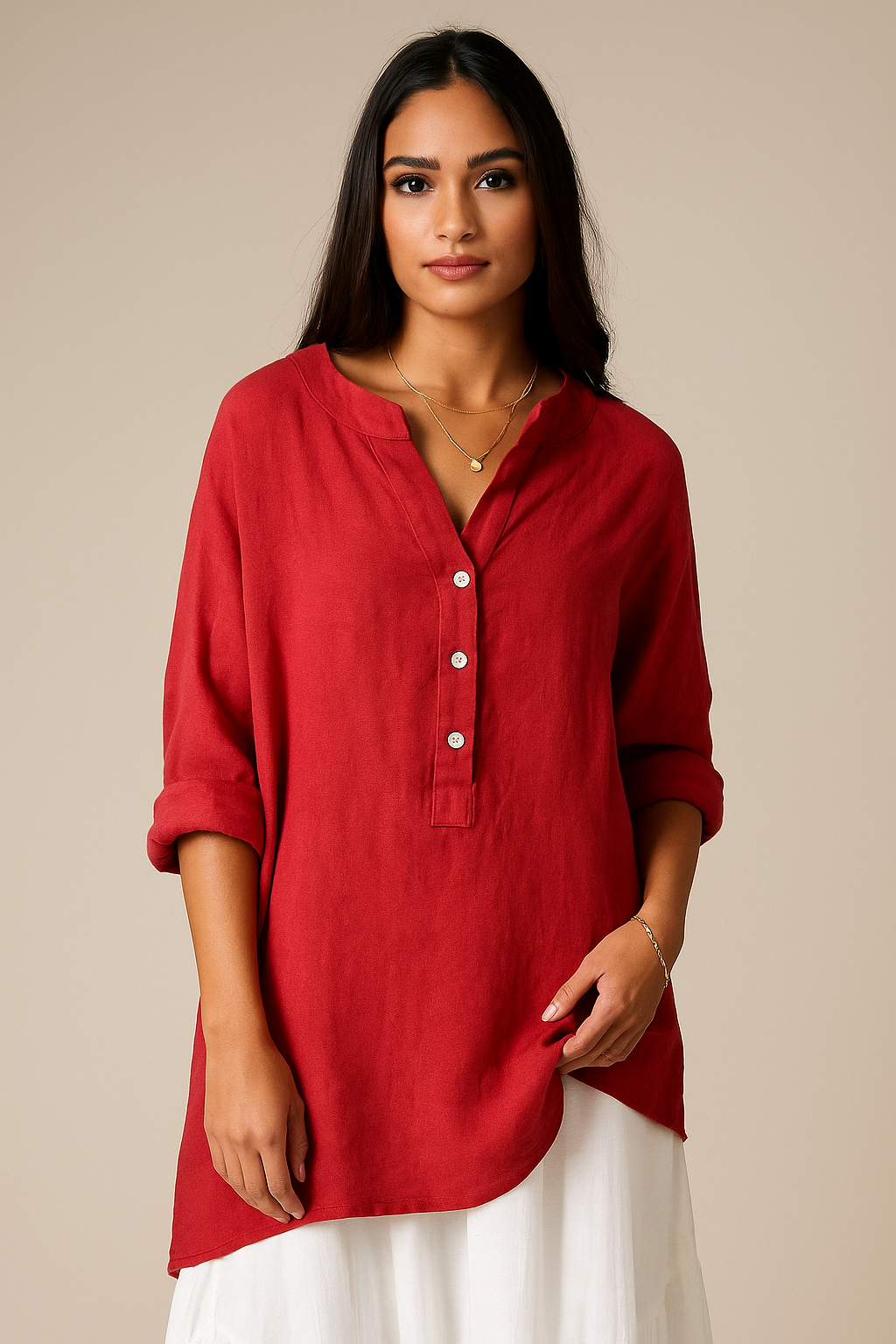 Emma toppen er lavet af åndbart hør, som føles blødt og holder dig kølig på varme dage. Den løstsiddende pasform gør den nem at bevæge sig i, uden at den strammer. Uanset om du skal på stranden, gå en tur eller nyde en middag, passer denne top til både krop og anledning.