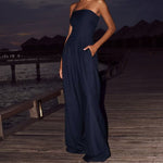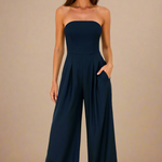 Oplev ultimativ elegance med den stropløse Malene buksedragt – en kombination af sans for form og ubesværet komfort. Det indbyggede korsetelement fremhæver taljen og skaber en smuk silhuet, mens det lette materiale bevæger sig med dig hele dagen eller natten.
