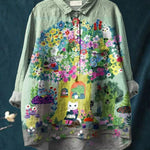 Sofia-blusen fører dig ind i en fortryllende skov fyldt med legesyge dyr og farverige blomster. Det livlige mønster på en blød lys grøn baggrund gør denne bluse til et unikt og muntert supplement til din garderobe. Takket være det bløde, åndbare stof og den afslappede pasform kan du bære den hele dagen komfortabelt og stilfuldt. Perfekt til naturelskere og alle, der elsker et kunstnerisk, legesyg look. Kombiner nemt med et par casual bukser eller en nederdel for et muntert outfit.