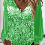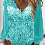 Tove | Stilfuld V-Hals Top med Pailletter og Pufærmer