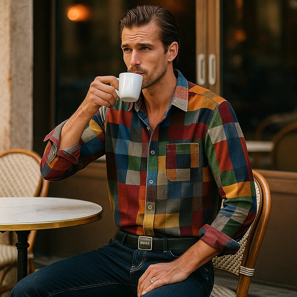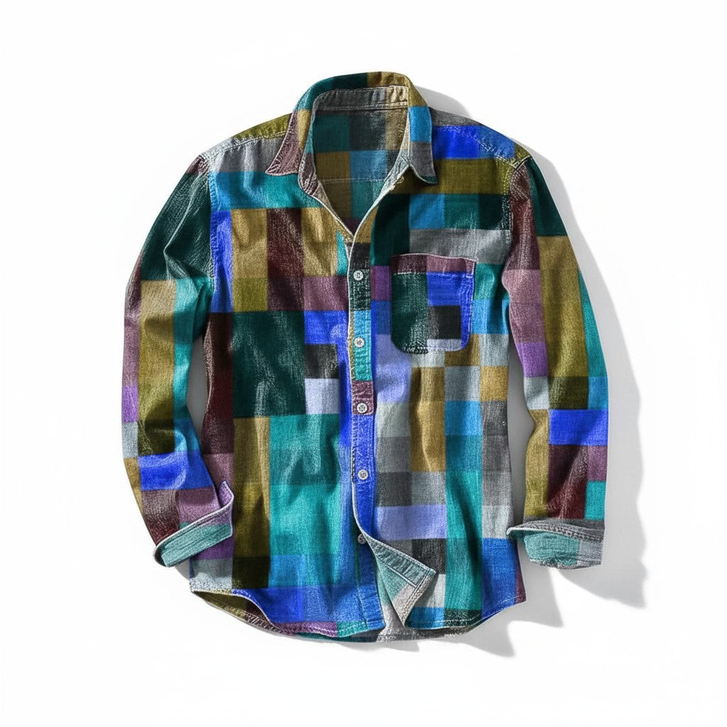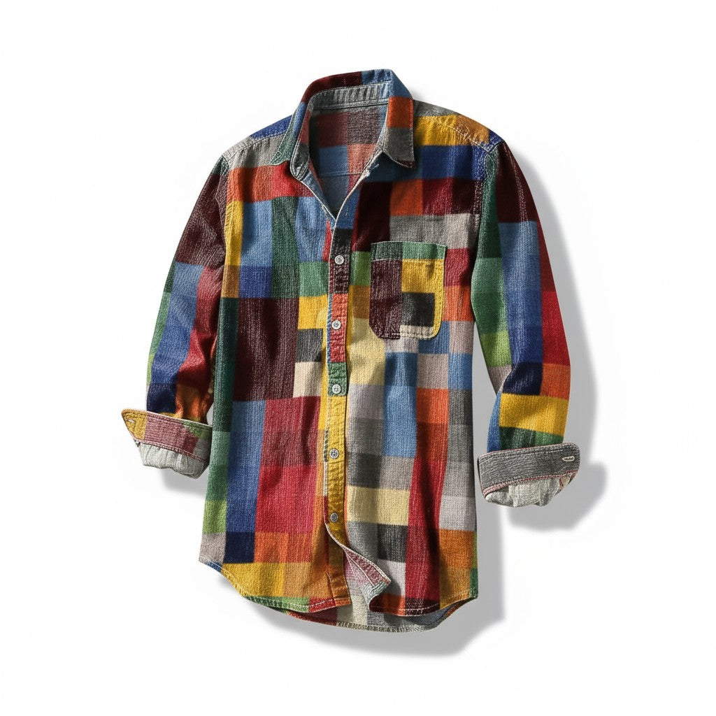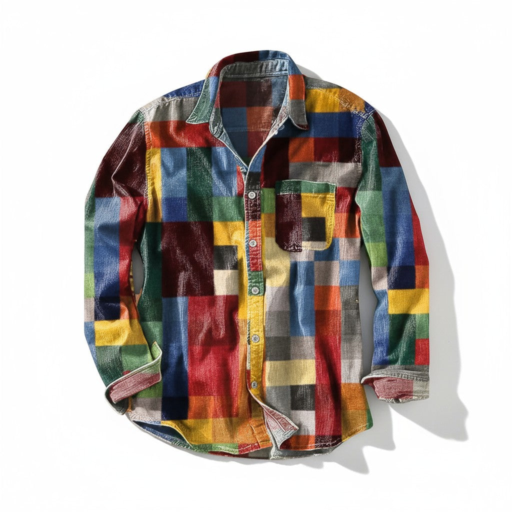 Tilfør din garderobe tidløs karakter med denne vintage-inspirerede langærmede skjorte. Det markante regnbuemønster og den afslappede pasform gør den til det ideelle valg på dage, hvor du ønsker komfort uden at gå på kompromis med stilen. Perfekt til uformelle udflugter, kreative arbejdspladser eller afslappede weekender.